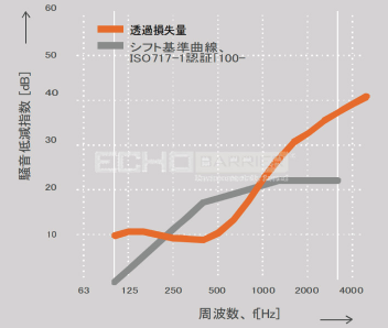 エコーバリアは、中音域の騒音吸収性が非常に高い特性を持っているために、人の気になる音域を有効的に吸収することができます。