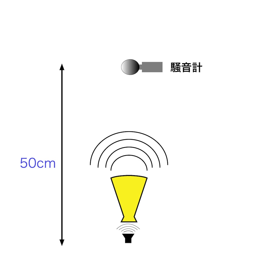スピーカーから50センチ離れたところで、メガフォン有りと無しで、音の大きさを測ってみました。暗騒音の影響も多少あると思いますが、メガフォンを使用すると14デシベルも大きく測定しました。体感的な大きさは2倍強といったところです。実際に14デシベルと言う数値は、筆者は驚きました。逆の発想として考えると、スピーカーから集められていなかった14デシベル分は直進方向に進んでいなかったことになります。かなり拡散されていたようです。(音の回折も十分にあるでしょう)大声で呼ぶときも、手を口に当てるのはメガフォンの効果を少しでも得ようとする行為になりますね。