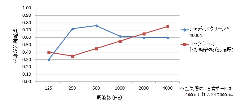 ロックウール 化粧吸音板(15㎜厚) | 0.50 | 0.40 | 0.35 | 0.45 | 0.55 | 0.65 | 0.75 |