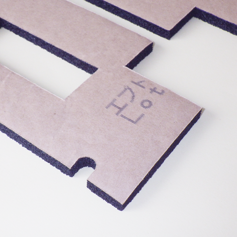 エプトシーラーは非常に柔軟性のある素材で、柔らかくカッターナイフ、ハサミなどで切ることができますが、伸びにも強く厚みもあることから、真っ直ぐな直線や円形状などの切断は寸法通りに難しい為、一般的にはトムソン型を用いて加工します(金型の初期費用が必要)。「防音防振ネット!」では、CAD図面データを元にレシプロ加工にて1個から裁断することが可能です。曲線、切り欠き、丸穴、細長い紐状断裁等、、、