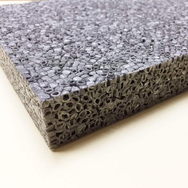 用途は水はけを目的とした、屋上緑化や園芸などの透水材や、ゴルフや屋外でのスポーツのグランドコンディション対策として使用されるケースが多いのが現状です。では吸音材の中で、多孔質でありながら剛性のあるものがあるのかという疑問が出てきます。当然ながら大半は樹脂でできているので、フォーム材としてはミラドレンが多孔質で剛性のあるものとして、唯一無二に近い存在になります。