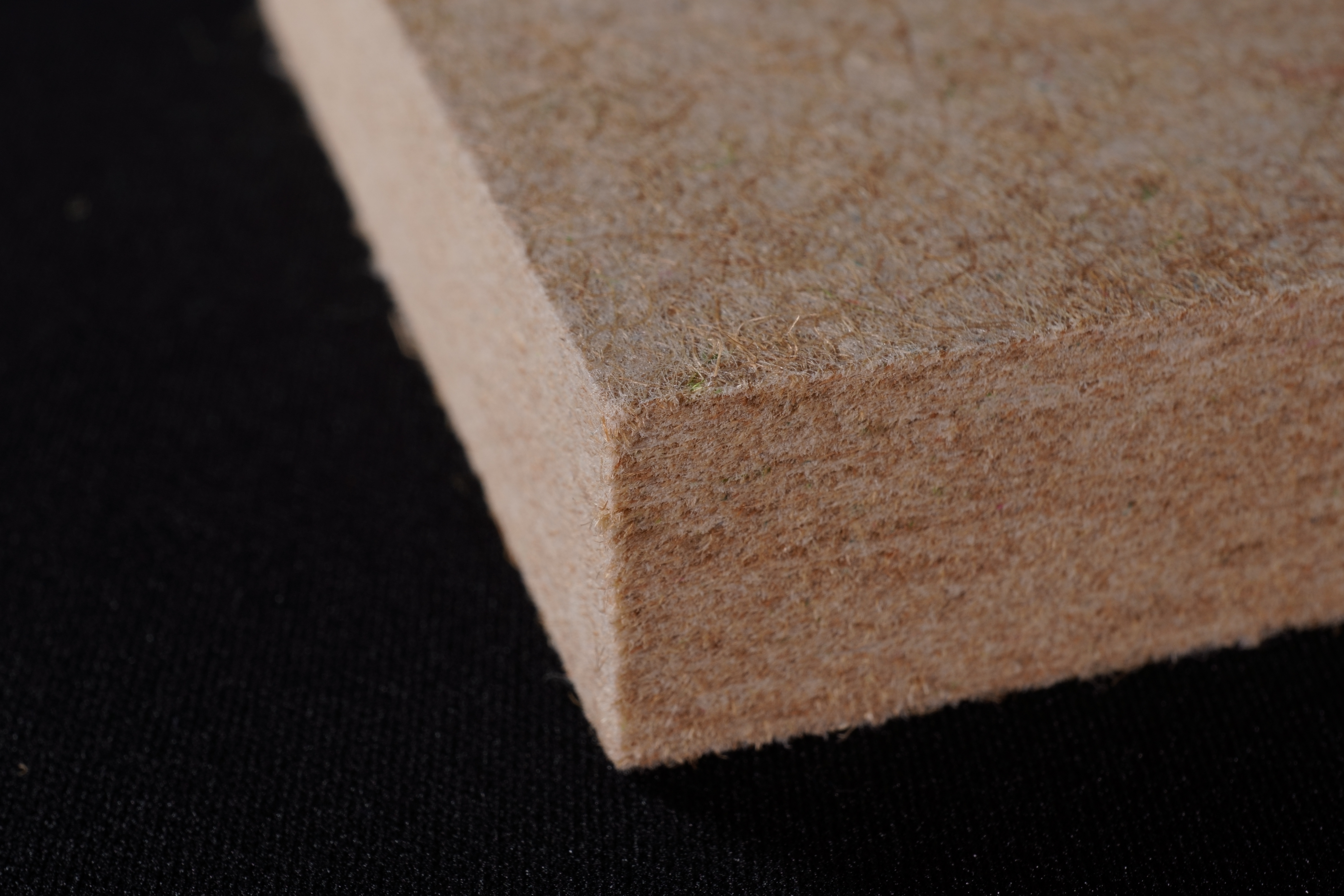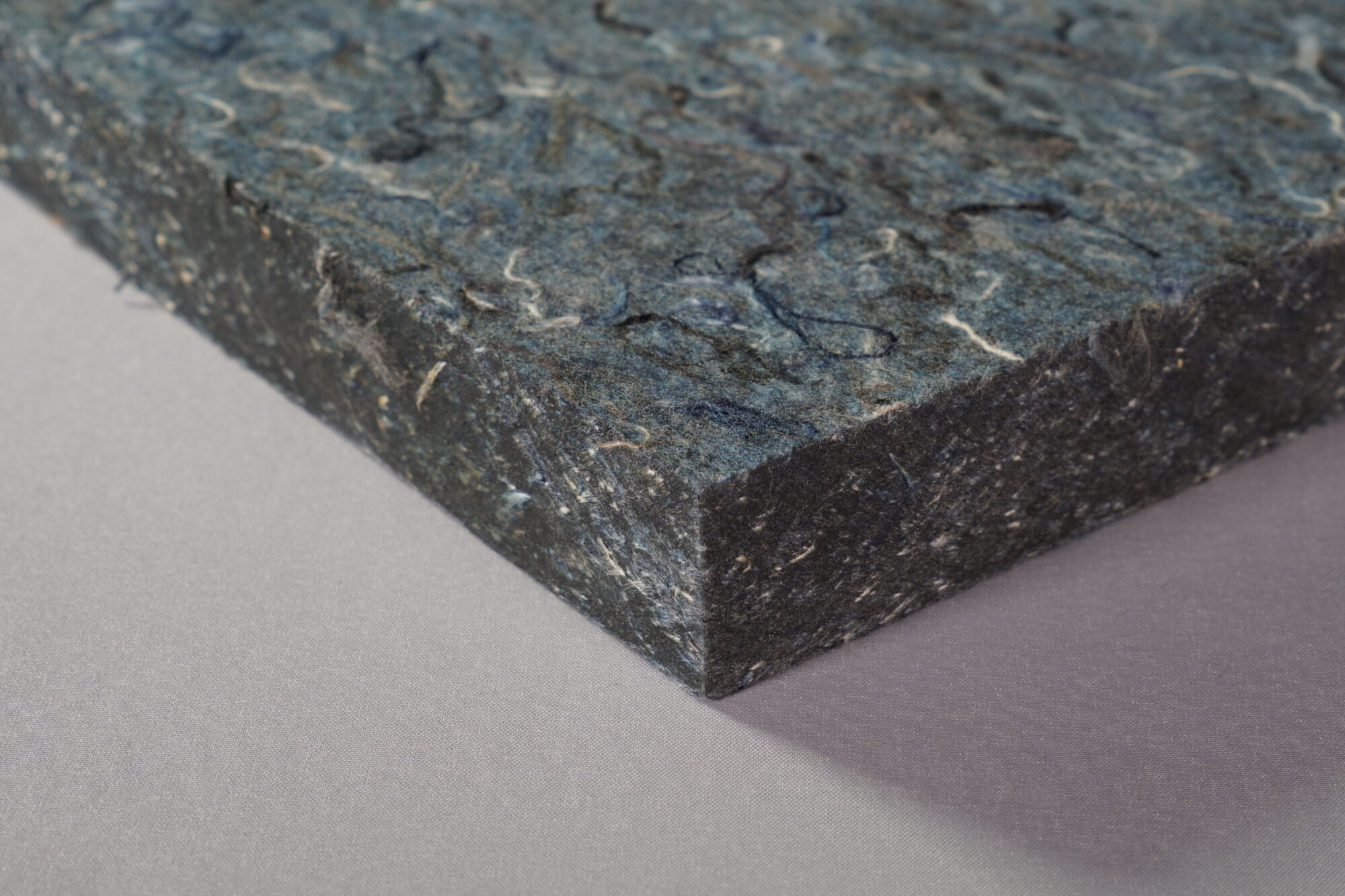 デニム端材、麻袋などの廃棄繊維を主原料にした再生繊維フ ェルト(Rebornfiber®)の吸音材(ボード)です。